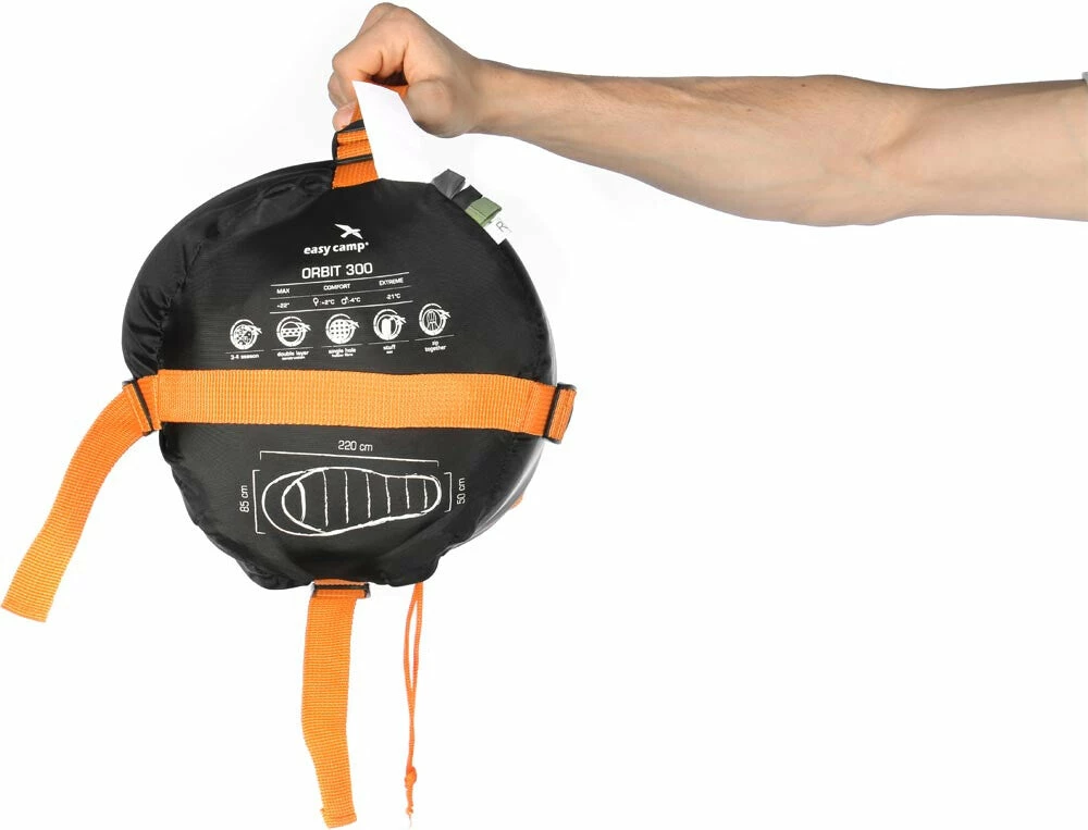 Orbit sleeping bags are mummy-shaped models with twin layers of hollow fibre filling for extra loft, warmth and comfort in fully-featured designs. Design detail includes offset stitching of the insulation to avoid cold spots and a generous zip baffle and neck baffle to guarantee a wrap-around feeling of cosy luxury. Smart colourways add a touch of style to any tent.